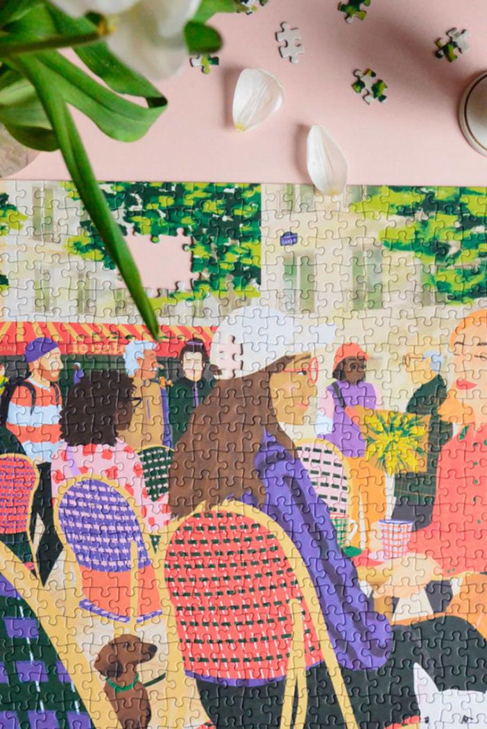 La saison des terrasses est ouverte ! Notre plaisir ultime ? Contempler le ballet des gens sous le soleil printanier et s'imaginer leurs vies en sirotant un café. Une douce invitation à l'évasion, aussi enivrante qu'un verre au soleil ! Entre les chaises emblématiques des terrasses et les looks colorés des passants, ce puzzle de 1000 pièces est parfait pour débuter !