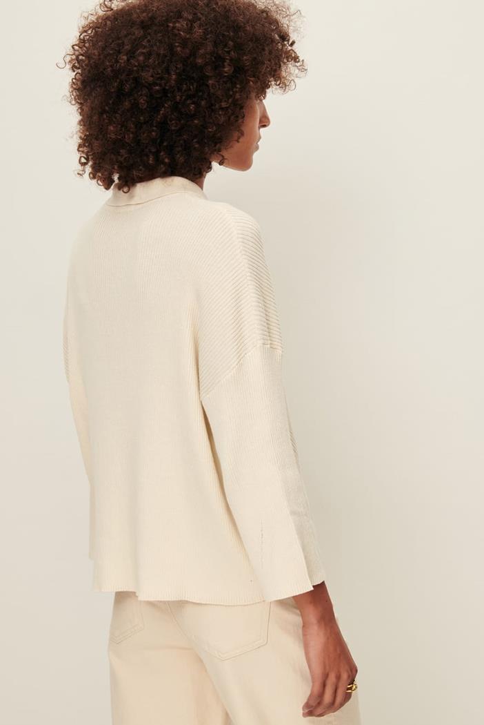 Gilet court col polo en fine maille côtelée.